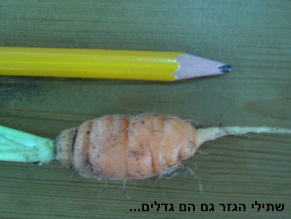 שתילי הגזר גם הם גדלים ומדי כמה ימים אנו שולפים גזר אחד לבחינה