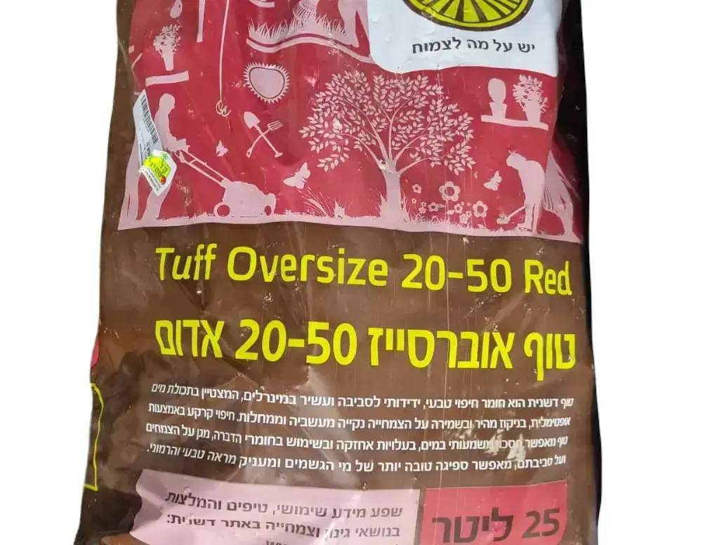 טוף אדום חום לחיפוי גינות לדקורציה ולהפחתת אידוי מים מהקרקע גודל הגרגירים 20-4 מ"מ