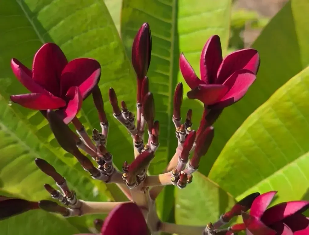 פלומריה "מידנייט" 187 – פריחה אדומה כהה עשירה