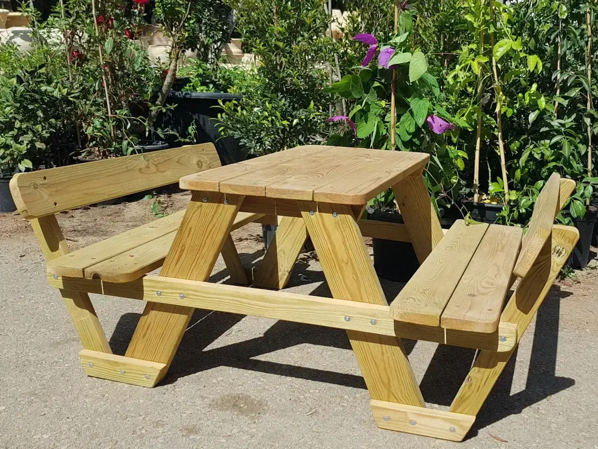 שולחן לילדים לגינה ולמרפסת קק"ל עם זוג משענות עשוי בעבודת יד מעץ אורן מלא ומחוטא